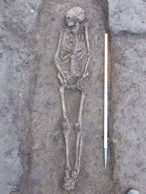 Some more unusual burials were also identified at the cemetery, including an individual with a trepanated skull, a male who had been killed by multiple sword blows and a pregnant woman, who had sadly died during child birth.