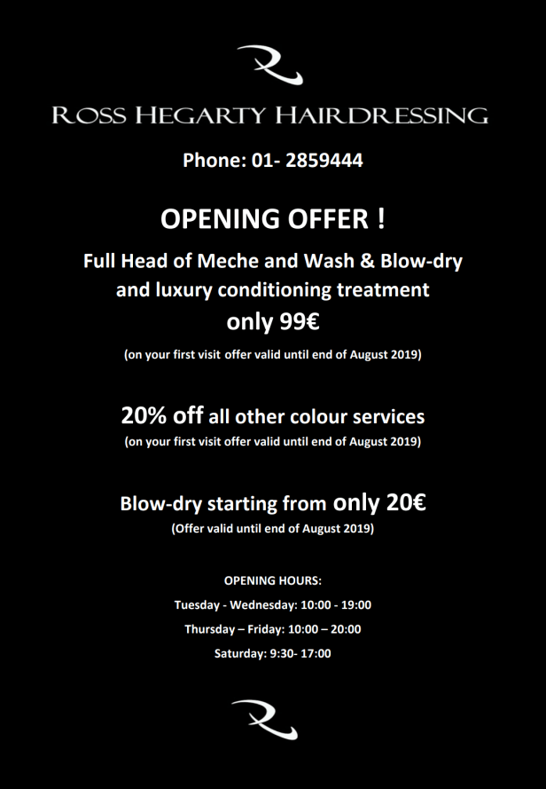 Ross has some great opening offers. To book an appointment call 01-2859444