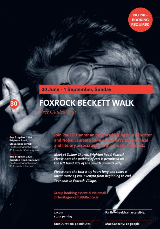 Join Paul O’Hanrahan on a fascinating tour of writer and Nobel Laureate Samuel Beckett’s biographical and literary associations with his native Foxrock.
