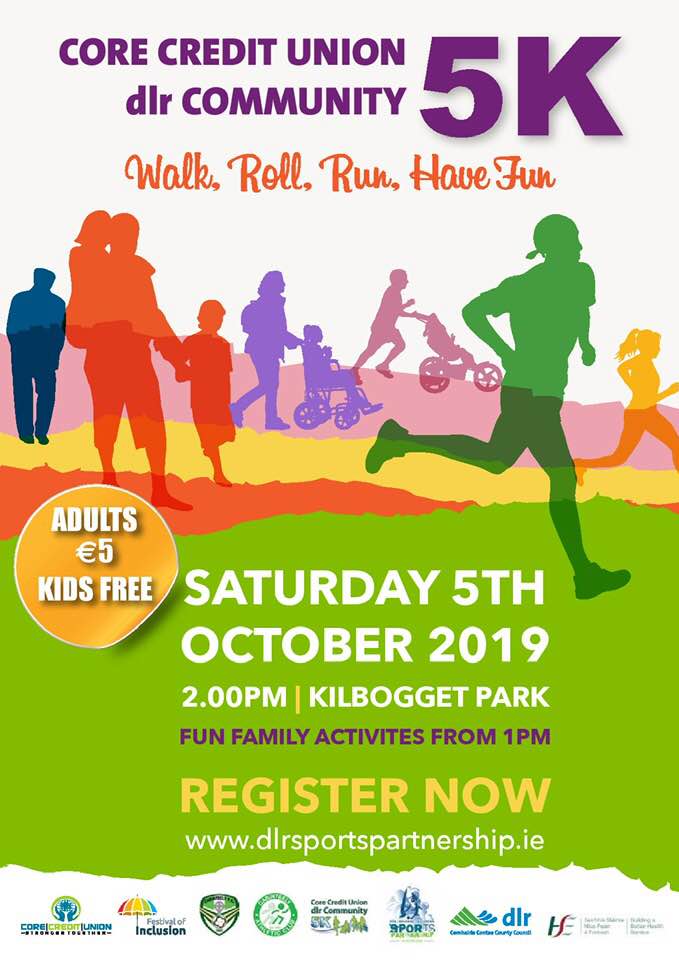 Registration is now open for the Core Credit Union DLR Community 5k in Kilbogget Park, Cabinteely on Saturday 5th October from 2-4pm. Fun family activities from 1pm.