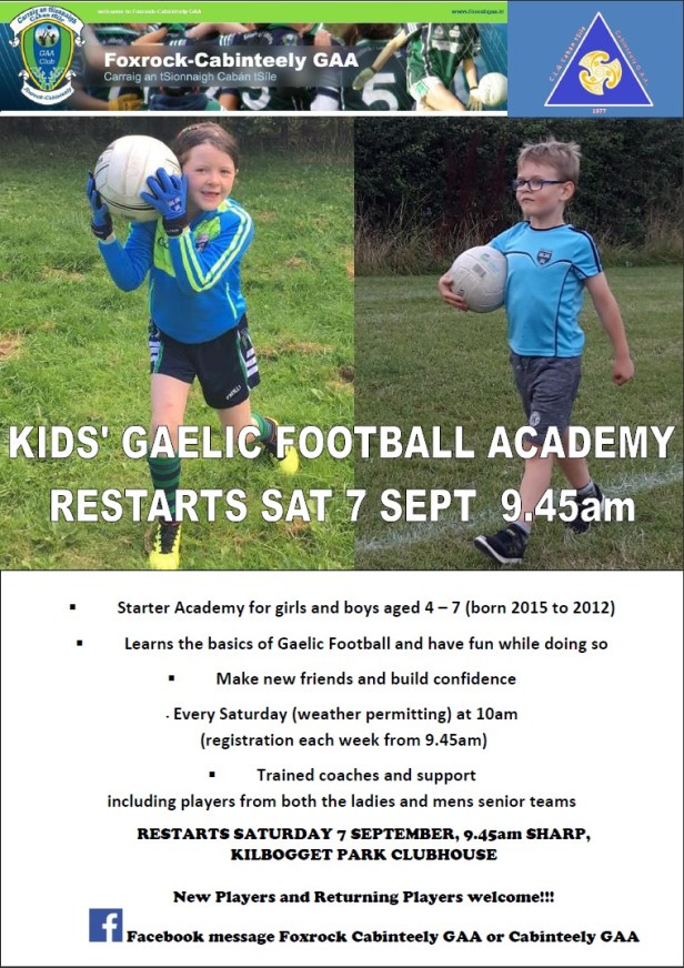 Great excitement for this Saturday morning as the Girls and Boys Academy, in conjunction with Foxrock Cabinteely GAA, is starting up again for the the new season!