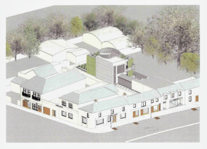 Permission granted by An Bord Pleanála (on appeal) for the demolition of the existing building at 3 Kilbogget Villas, Cabinteely Village and erection of a part two, part three storey building with the taller element located to the rear, comprising a ground floor retail unit with 3 x 2 bedroom apartments above, internal courtyard, roof terrace, private amenity space provided by balconies, refuse storage, cycle storage and all other ancillary works. A basement is proposed to provide ancillary storage and services to both the retail and residential uses.