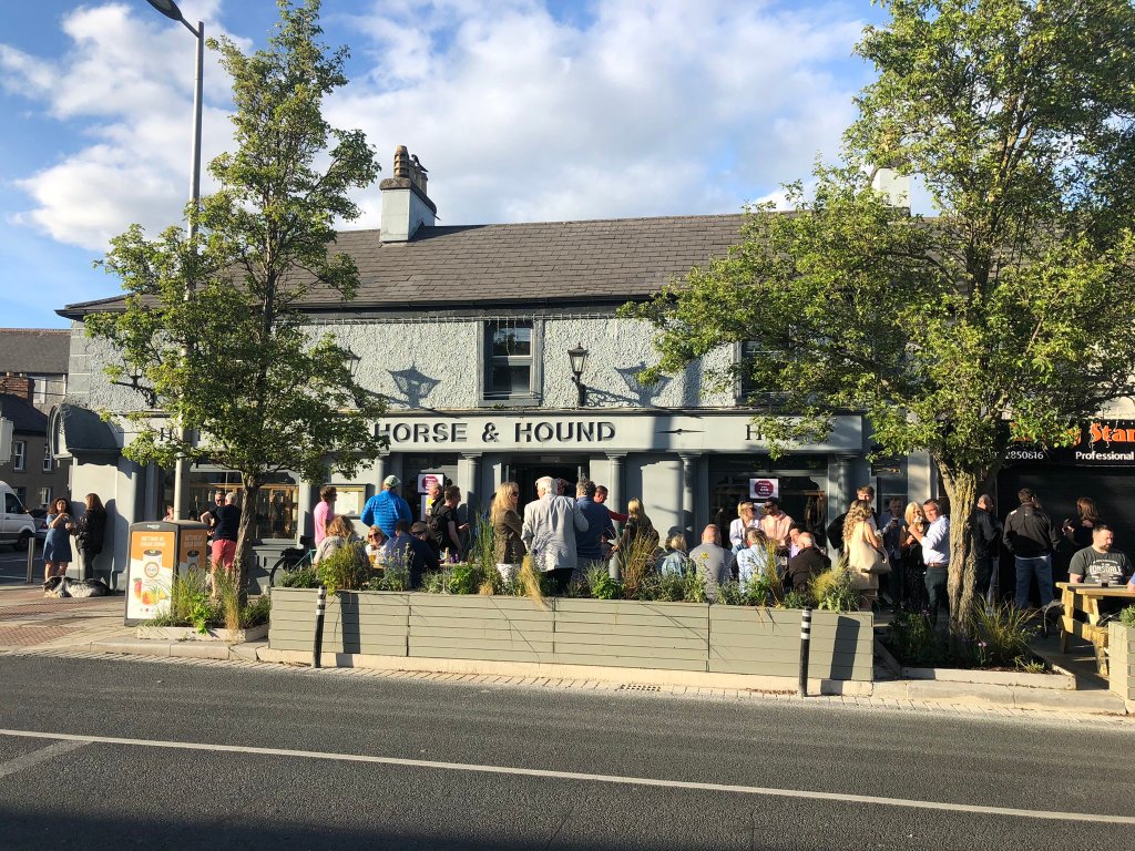 Horse & Hound customers enjoying a drink in the sunshine in the space recently reallocated & adapted by Dún Laoghaire-Rathdown County Council.