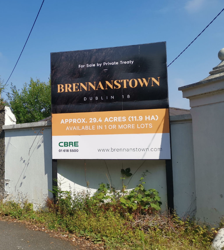 Estate agent CBRE is selling two lots totalling almost 30 acres known as the Brennanstown lands, with an estimated asking price of around €30m on behalf of a NAMA appointed receiver.