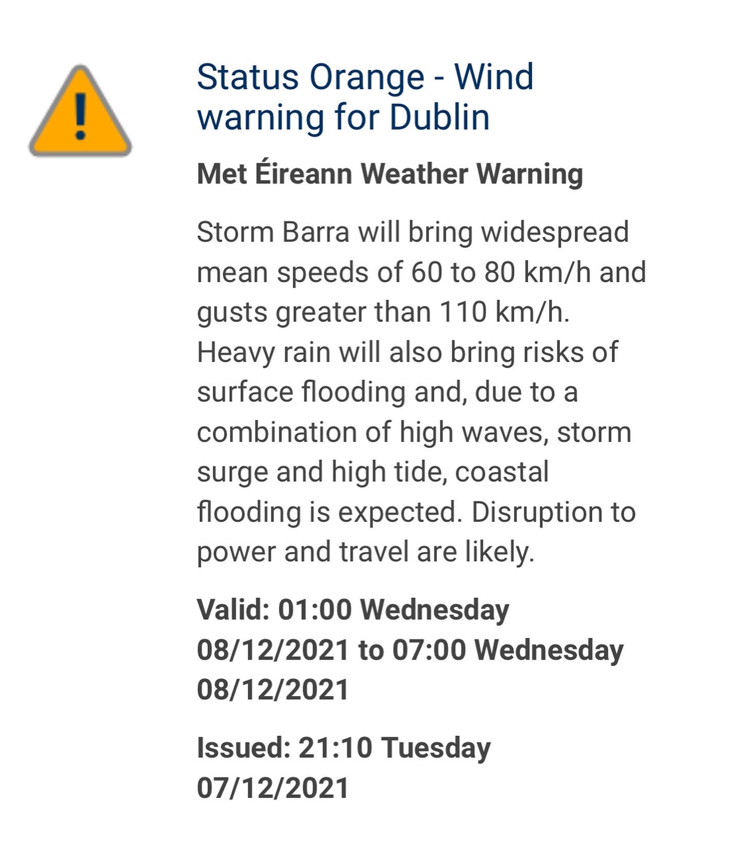 Dublin has now been upgraded to Status Orange. As referenced in the Dept of Education earlier statement (below) all schools in Status Orange and Red areas will remain closed tomorrow 8th December.
